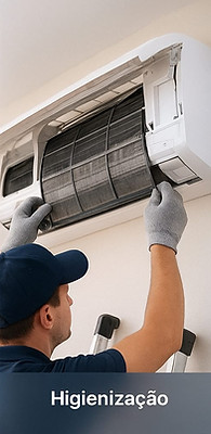 A higienização do ar-condicionado é essencial para a saúde do ambiente. Realizamos limpeza profunda dos filtros, serpentinas e componentes internos, eliminando fungos, bactérias e odores, garantindo um ar mais puro e um equipamento mais eficiente.